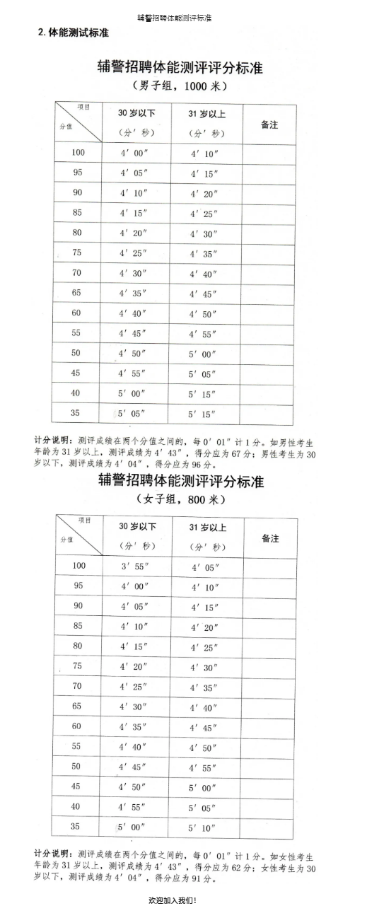 1.測試項目。長(cháng)跑(男子1000米跑,女子800米),體能測試計分數,滿(mǎn)分為100分,評分標準附后。
