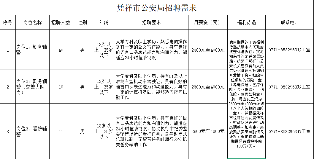 通過(guò)資格審查的人員,憑祥市公安局將統一進(jìn)行筆試、體能測試及面試。