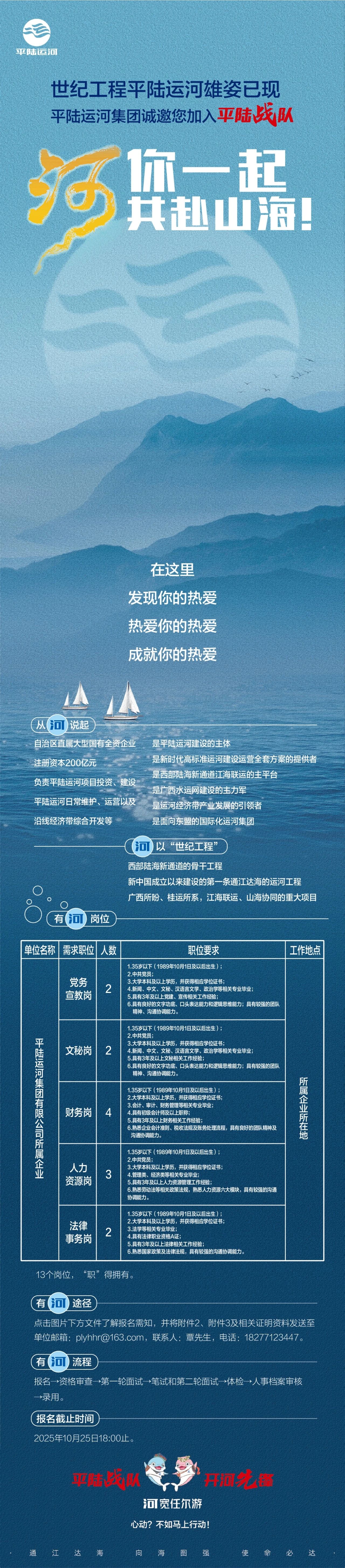 原文標題:2025年廣西平陸運河數智科技有限公司下半年社會(huì )公開(kāi)招聘公告