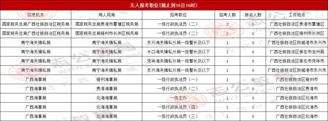 考生們注意!截至10月16日16時(shí),2026國考(廣西)地區(qū)還有71個(gè)無人報(bào)考,占全部748個(gè)職位的9.49%。想避開激烈競爭的話,不妨結(jié)合自己的條件,多看看這些冷門崗位~