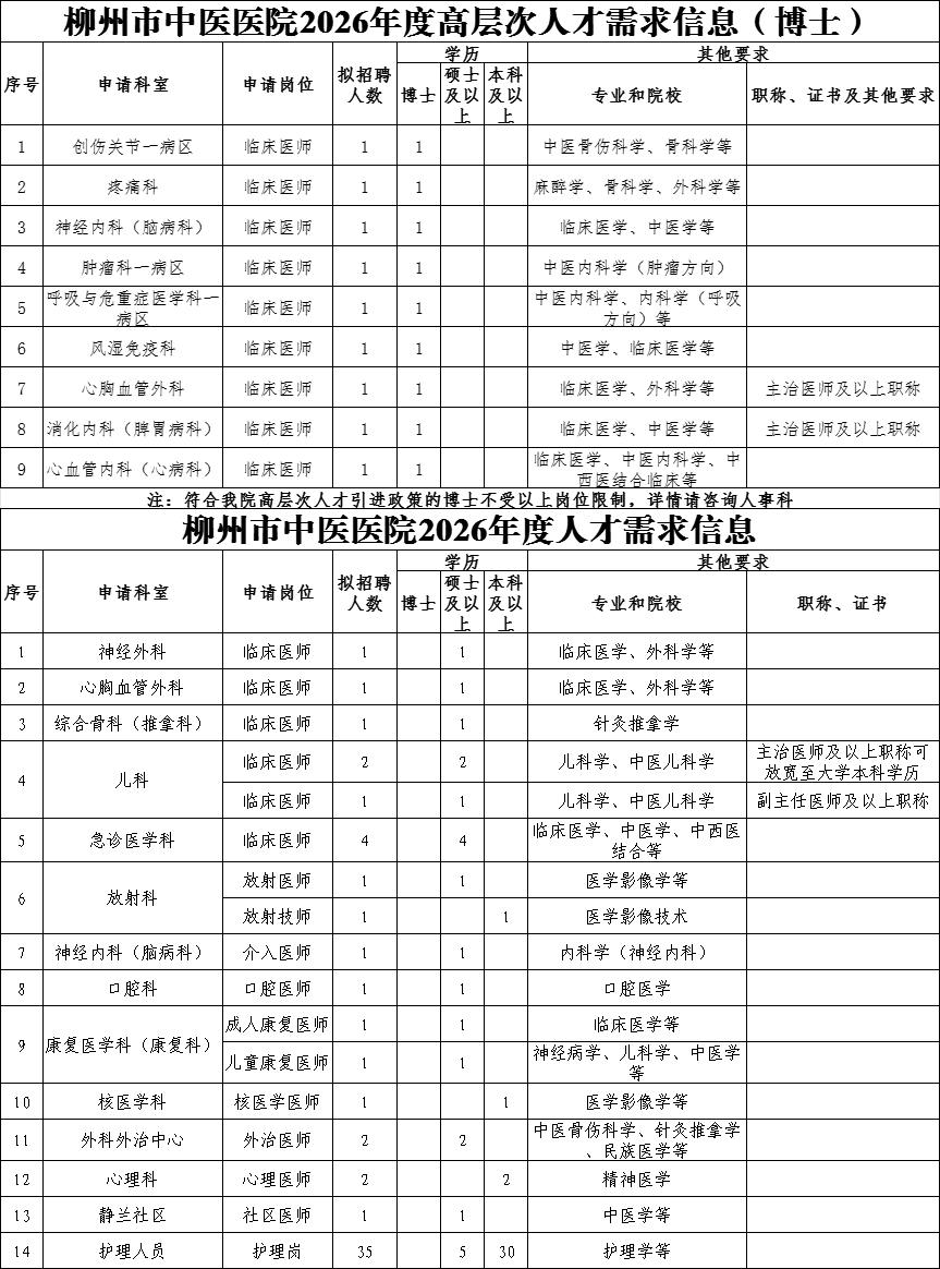 通過(guò)柳州市中醫醫院官網(wǎng)www.zhlzy.cn、互聯(lián)網(wǎng)醫院微信公眾號等公開(kāi)發(fā)布招聘信息。同時(shí),參加區內外各大醫學(xué)高校雙選會(huì )及專(zhuān)場(chǎng)招聘會(huì ),現場(chǎng)或向醫學(xué)院校發(fā)布招聘信息。