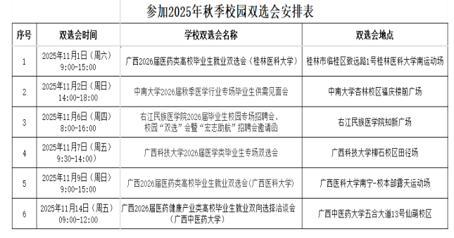 (二)歡迎大家到高校雙選會(huì )現場(chǎng)投遞簡(jiǎn)歷及報名。(參加校園雙選會(huì )安排如下)